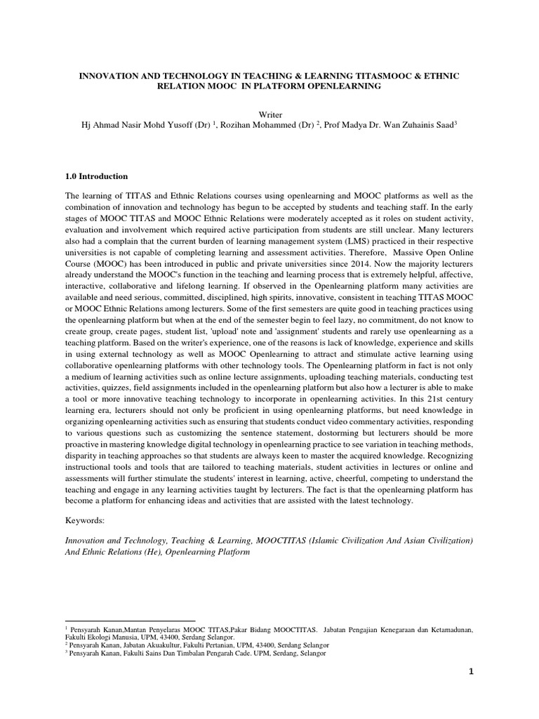 Openlearning is a social online learning and mooc platform that allows universities, colleges tamadun islam dan tamadun asia (titas) on openlearning.com.